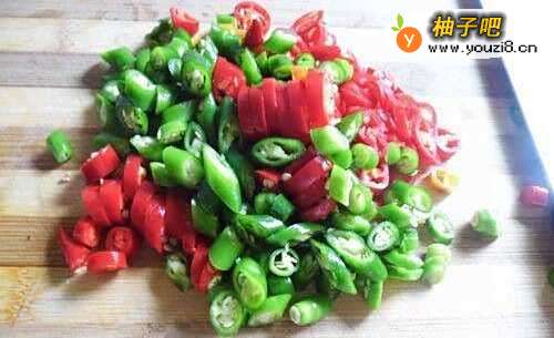 2美人椒和长尖椒切成小段,青花椒和茴香适量,大蒜,老姜切成片,大葱切成段
