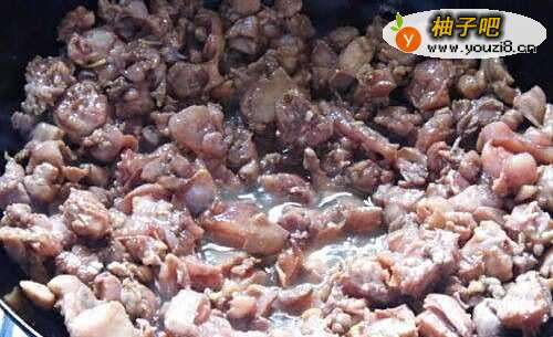 3热锅下宽油,8成热时加入兔肉,大火炸2分钟,改中火再炸5分钟,