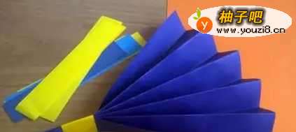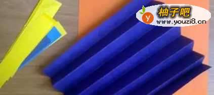 6按照这扇子的方法将它折叠起来,正折一次,反折一次,然后变成下图所示。