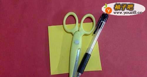 正方形纸 剪刀 铅笔