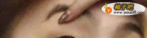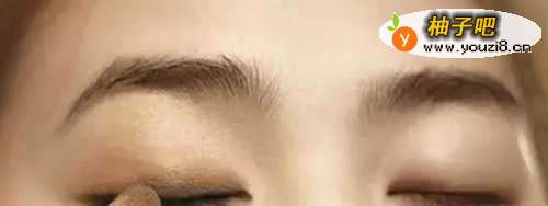 7沾取眼线膏在下眼睑内部从眼尾到眼头轻轻画上内眼线,添满眼尾的眼角区,从眼尾到眼角,由粗到细。用金棕色眼影晕染眼窝,从睫毛根部开始,轻轻的刷一层就够了。