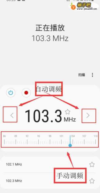 4点击页面中的标尺,可自由调节收听频道频率;