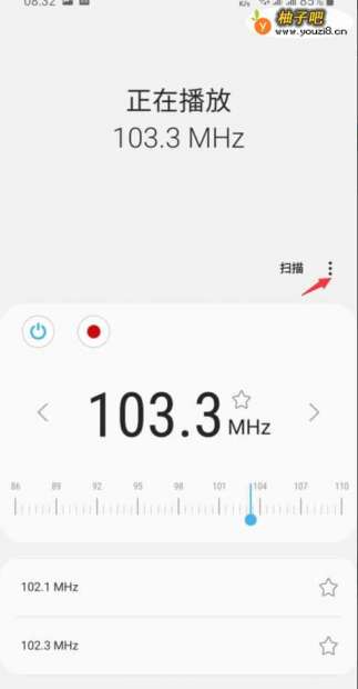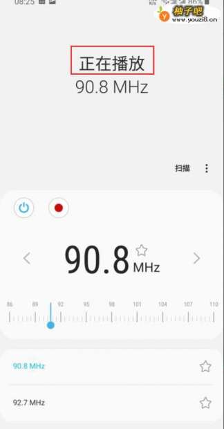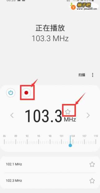5当收听到比较喜欢的频道时,可以点击频率数值后方的五角星按钮进行收藏,也可使用页面中的录音按钮(红色按钮),将此段广播电台录制收藏。