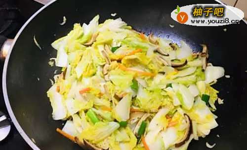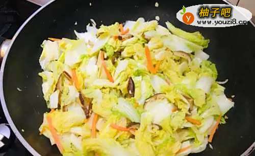 5再放入娃娃菜、香菇水炒软