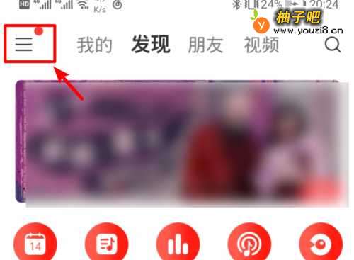 解锁手机进入后,打开网易云音乐,点击左上方三条横的图标。