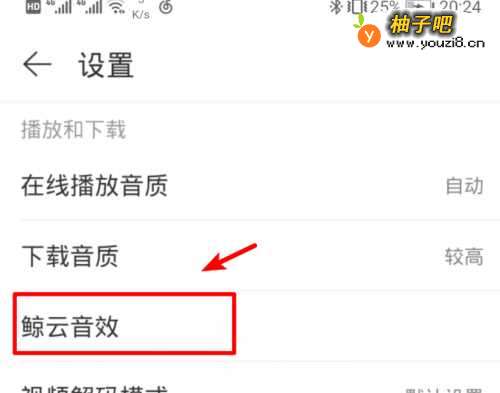 3点击进入网易云音乐设置后,点击鲸云音效的选项。