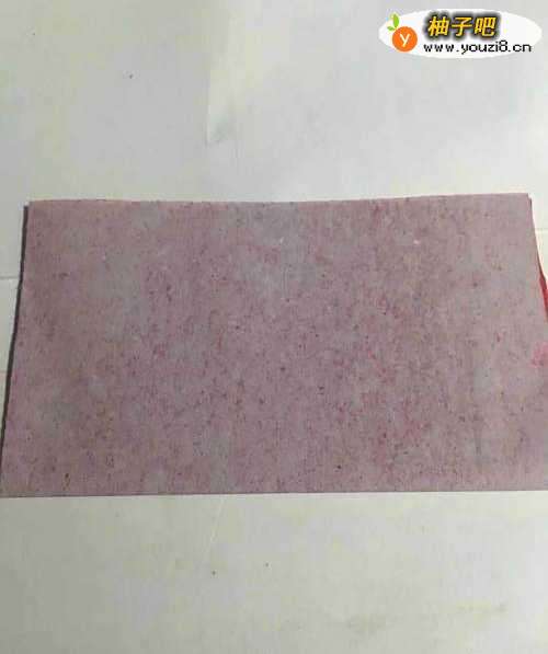 第一步 用一张16厘米长 13厘米宽的长方形红色彩纸 竖起来从下向上对边折叠整齐
