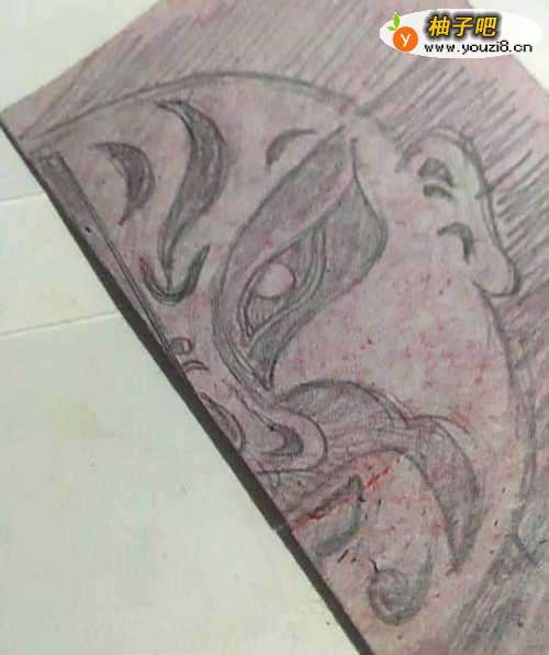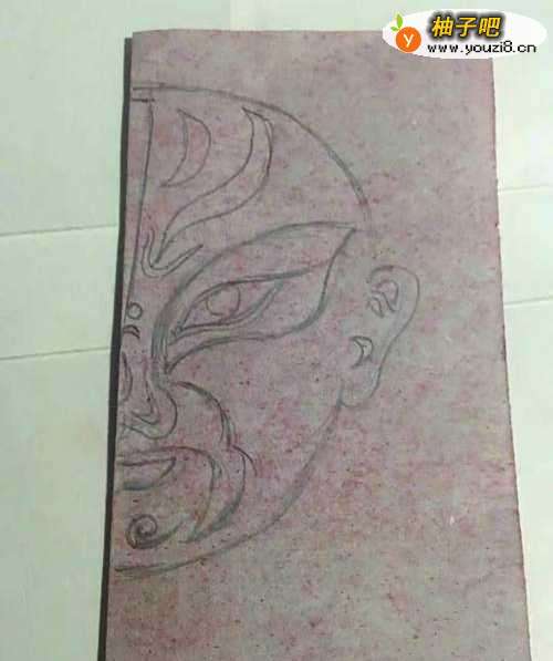 4第四步 全部都画完之后 再使用绘图铅笔把脸谱上需要剪去的地方涂实一遍 方便裁剪