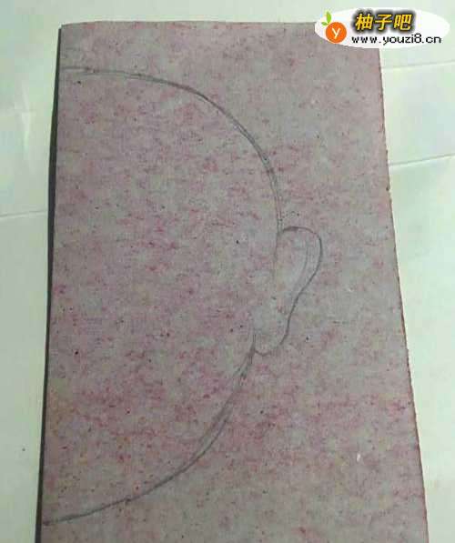 2第二步 对折完之后 调整一下 双边放在左边 拿起绘图铅笔 靠在左边双边的地方画上半个脸谱的外线轮廓