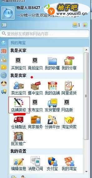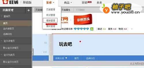首先点击红圈从“店铺装修”进入淘宝店铺装修页面。