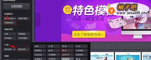 4进入装修页面,选择左边红圈旺铺版本,我们是旺铺基础班,然后点更多选择选择相关的行业,察看要选择的模板。