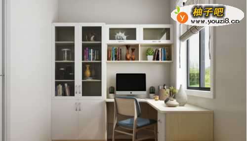 如果家里是选择全屋定制的话,就更好办了,可以跟设计师提出需求,他会根据实际情况来对书房电脑桌尺寸进行规划设计的。