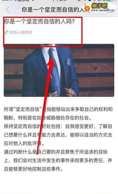 3在标题的正下方你看一行小字,显示有多少人做过,大概了解该测题的热度。点击最下方的“开始测评”的选项,开始进行