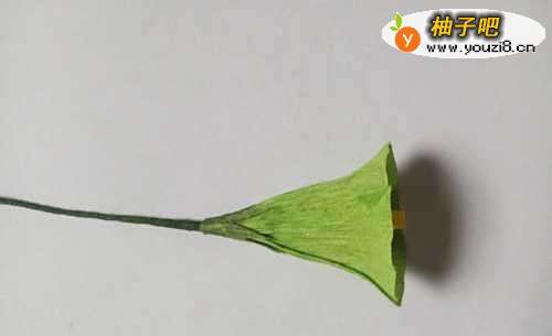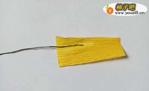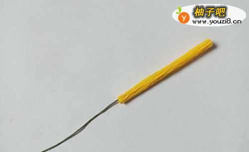 4将黄色纸粘到花杆上。