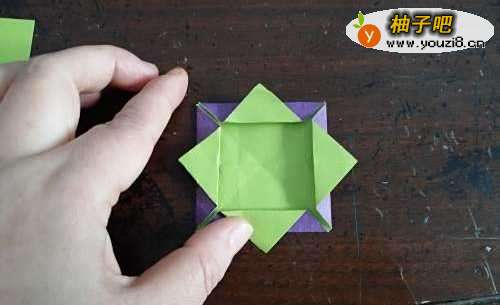 2打开后,把四个角向内折,如图。