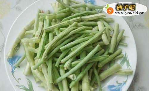 2按照长短差不多用手掰断菜豆,如果您时间很紧张的话,也可以用菜刀切成长短统一的段,用手掰的目的是防止刀切时切断里面的“豆”