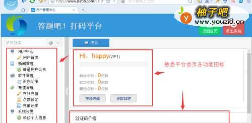 3步骤三:进入平台首页,熟悉一下主页面,了解各功能图标信息。