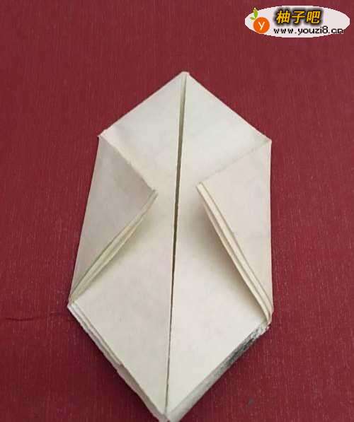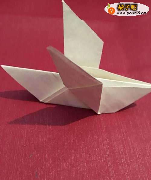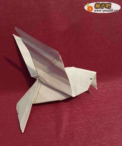 5第五步 折叠完之后 掀起来信鸽两边的翅膀折倒压平