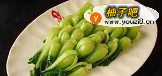 2.倒入小油菜煸炒,放入精盐,醋,酱油。