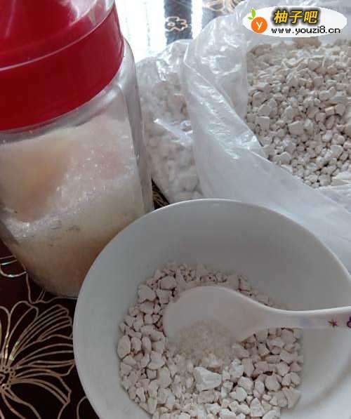 4加入少许白开水把红薯粉和白糖充分搅拌均匀,再加入适量冷水搅拌。红薯粉多就加点冷水,少就注放点水,放多了就不稠了。