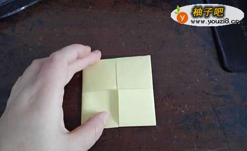 2把彩纸翻到背面,把四个角向内折,如图所示。