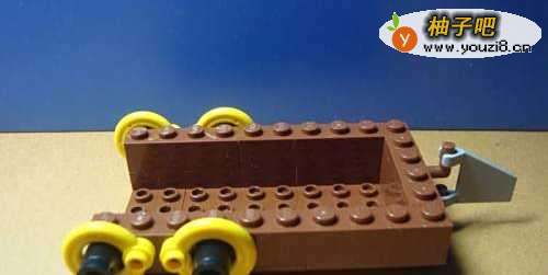 3接着,拼装帆船模型的船尾底座的支架部分。由四个底座积木和一些零件积木所组成。左边是拼装所需的零件,右边是拼装好后的整体结构效果,如下图所示。