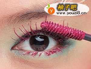 3.用缤纷的彩色眼睫,展现你惊人的魔力。 涂抹彩色睫毛膏时,内眼角与眼尾处细小的绒毛也要全部涂抹,不要因细节而影响睫毛的整体效果。