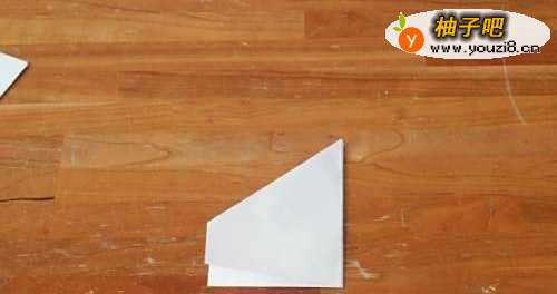 4将露出来的小三角向上折叠到刚刚折叠的边缘上。