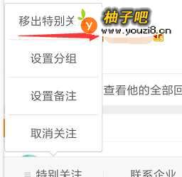 5点击后,在其下拉菜单中,有一个关于特别关注选项,选中就可以了,如图。