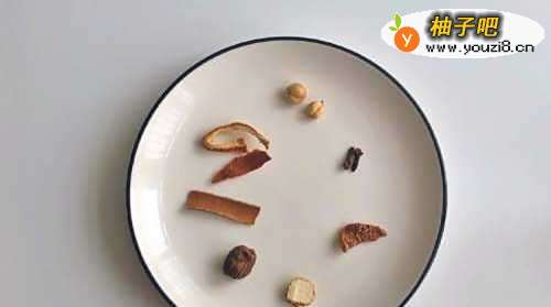 首先,将上述我所说的材料准备齐全以备待用,然后把陈皮、白芷、丁香、生姜片,先清洗干净之后装进香料包里。