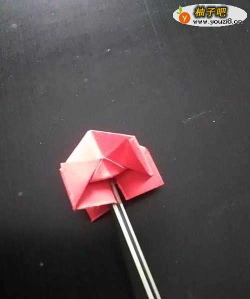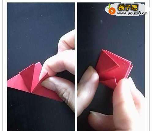 5剪开的部分也要折叠上,将其折成两个三角形,再将角的部位折叠上去,最终效果如图所示: