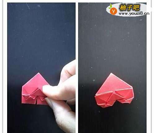 6最后我们可以将折叠的部分翻转过来,比较平整的部分放在外面,一颗心就叠好啦!
