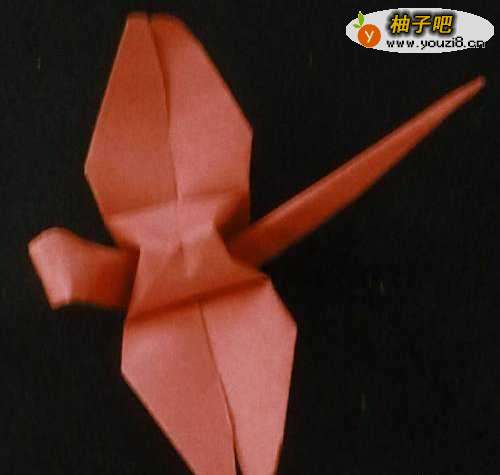 10然后我们把一只脚慢慢的转起来做蜻蜓的头部,再打开翅膀,画上眼睛这样就好了,如下图