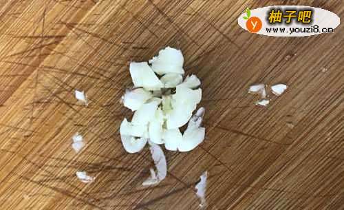 5放入大蒜碎炒香后关火。