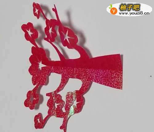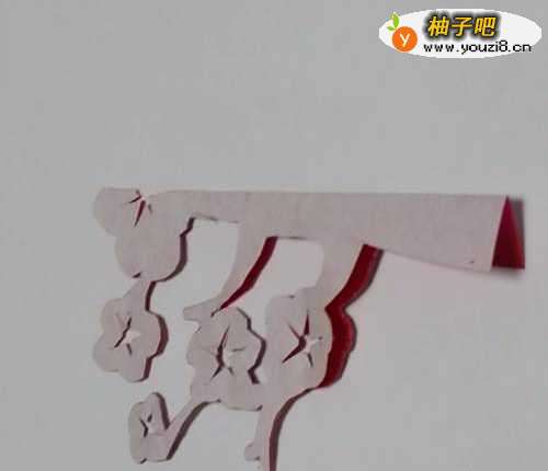 6然后展开铺平,我们的梅花树剪纸就做好了