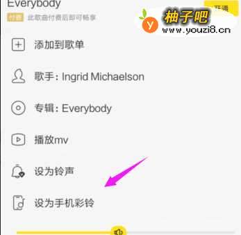 4【三白点】大手按下之后,【设为手机彩铃】就选择下,如图。