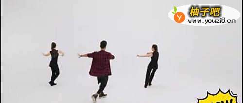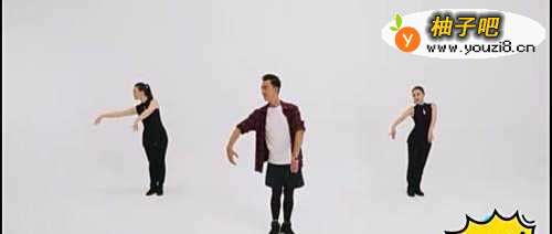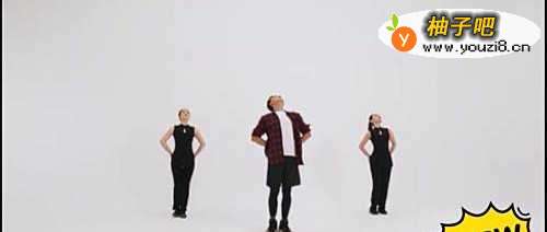 6然后,重复第1项开始主题曲动作(共16拍)。接着双背手--向后迈右脚脚尖向后(向右转体)--跟上左脚(继续后转体)--右脚转向正面(左脚并步曲腿,身体随之转向前,头从右绕后绕左到前低头,随身体慢慢起抬头)8拍。同样的动作反方向做一遍,8拍。其主要动作要领是第一拍迈步时,步子不宜太大,要侧身稳步向后转体迈步,回前位时要含胸弯腰曲腿要做出连贯动作。