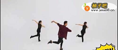 7然后,再重复第2、3、4项动作,再重复第1项主题曲动作,最后回落手,提身双手从下向上划圆到左平位--身体向右转走圆场步(转一圈)--双手背后,身体微蹲后,上右脚起,含胸低头抬头,8拍。其主要动作要领是圆场步速度要踏节拍步法要均匀,最后先有弯腰再抬头给出胸腰。