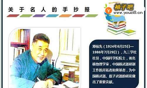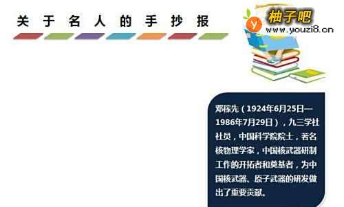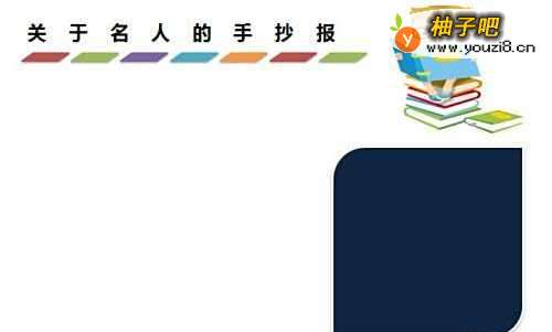 4在【关于名人的手抄报】标题的下方右侧处,在框内写上字,如下图所示。
