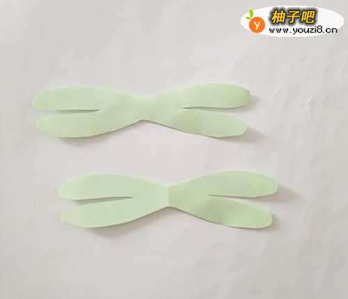 2用浅绿色的卡纸,剪出蜻蜓的翅膀,如下图所示。