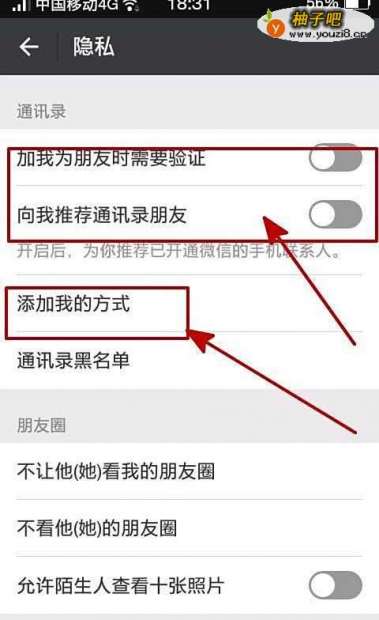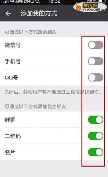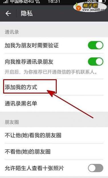 5在下边还有个添加我的方式,我们可以在那里设置。