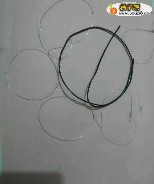 7把所有鱼线都打好圈,围绕在铁丝圈周围。