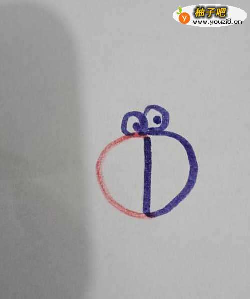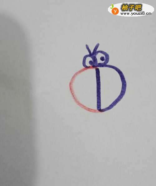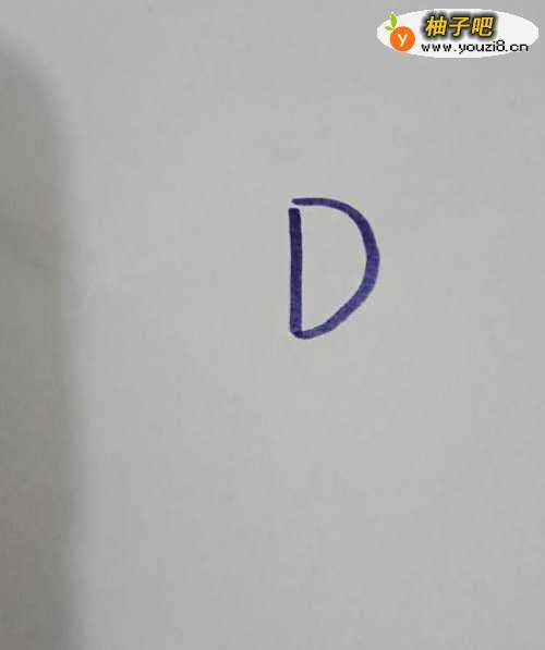 就是首先写出一个大写的英文字母弟D。作为瓢虫的半个身体。