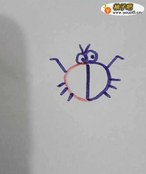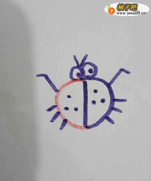 6最后给瓢虫点上几个点,瓢虫的简笔画就完成了。