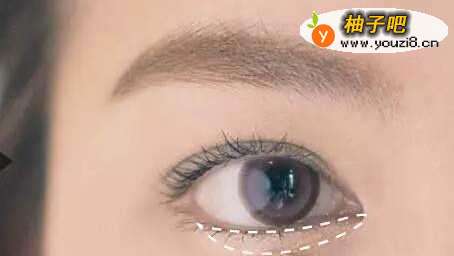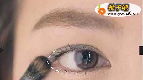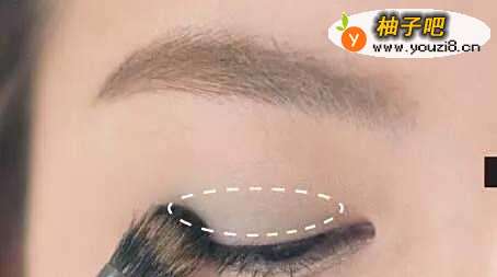 打造眼部的光泽:将带有珠光的眼影涂于眼窝,涂抹面积比双眼皮宽一些