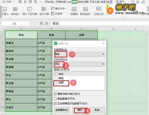 4在“分类汇总”对话框,设置【汇总条件】,然后点击【确定】;