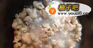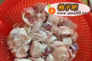 将猪蹄切成小块 锅中加水烧开加入猪蹄烧2分钟 倒出备用