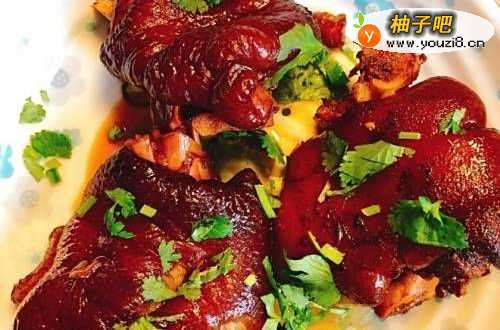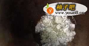 锅中放油 入冰糖小火熬至变色,放入猪蹄 桂皮八角姜片葱 蒜翻炒 放入酱油 炒至上色加入料酒 水