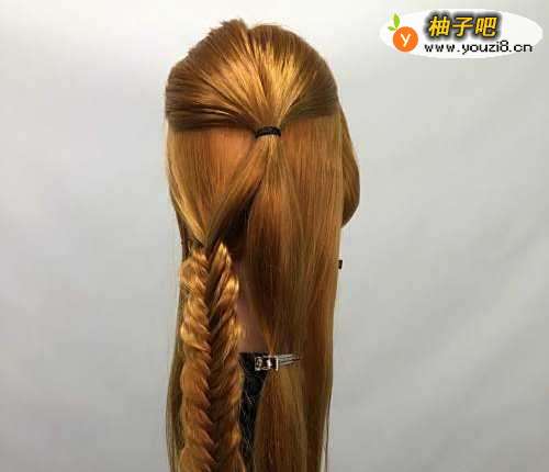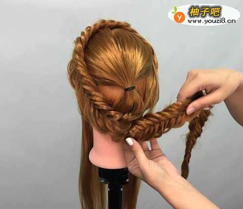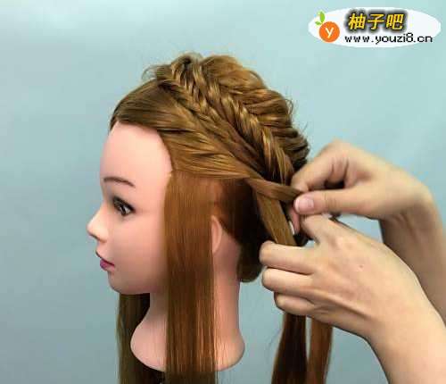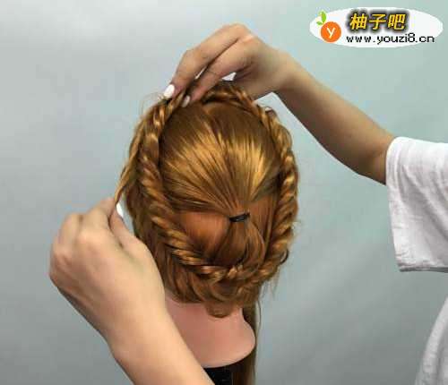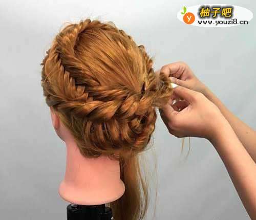 88、右边前区的头发也是做两股扭抽丝,哪里空就把头发摆放在那里点缀