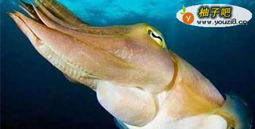 首先,观察金乌贼的体型,金乌贼胴部卵圆形,背腹略扁平,石灰质内骨胳发达。